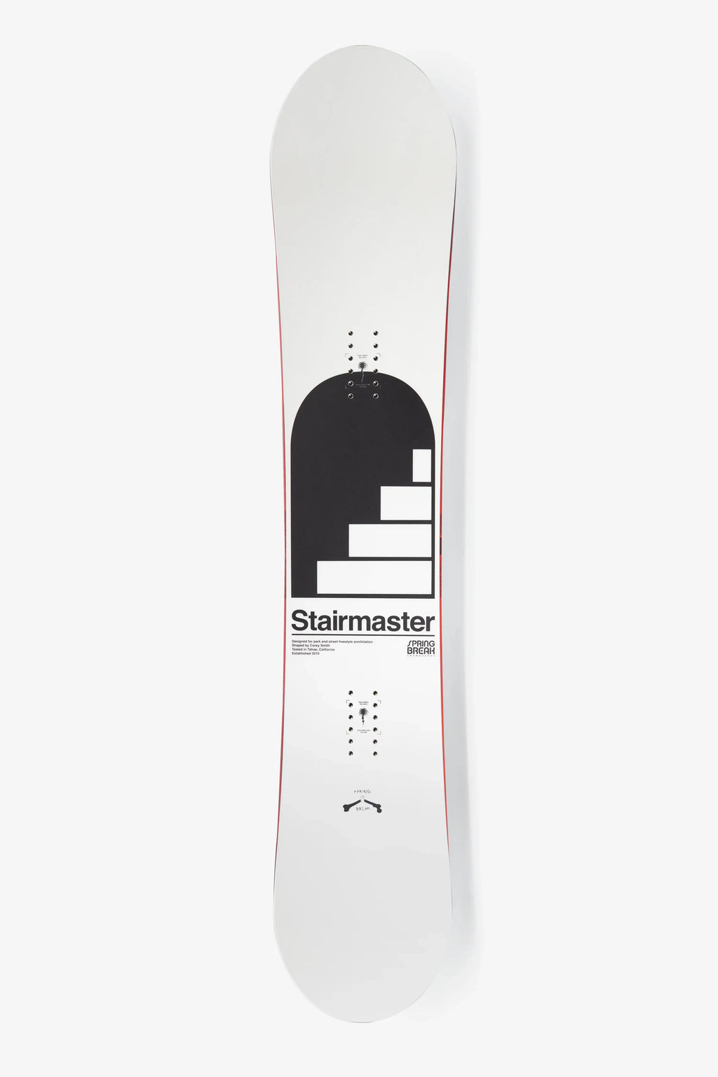 The legendary Stairmaster is making its triumphant return—now under the Spring Break Snowboards banner. Reimagined for 2026, this park-focused true twin is crafted to suit shredders with a skate-style mindset. Built tougher, lighter, and with fresher energy, it's an ideal companion for freestyle escalation without breaking the bank. A visual and performance staple, the aesthetics and direction return under the creative eye of Corey “Dr. Smith” Smith.