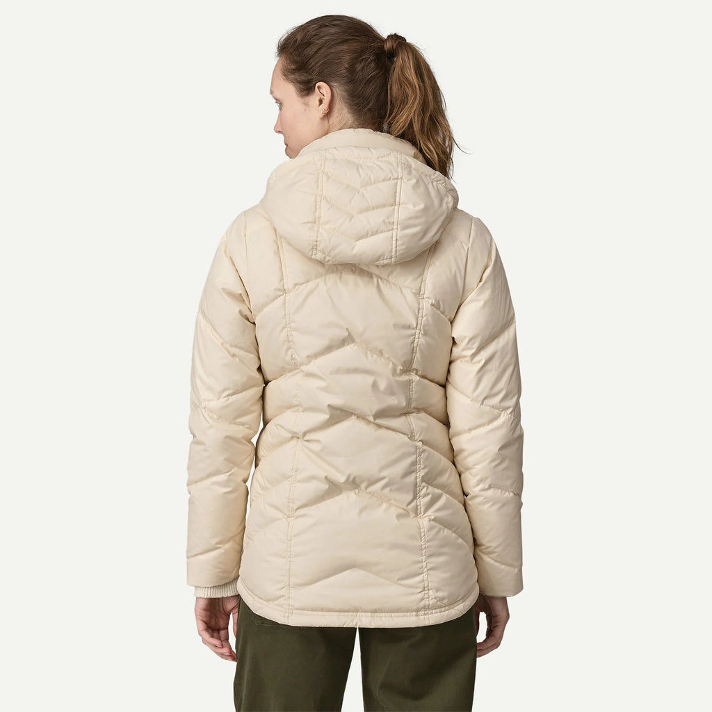 This jacket has a 100% recycled polyester shell and a removable, insulated hood, and is insulated with 600-fill-power 100% Recycled Down (a blend of duck and goose down and waterfowl feathers reclaimed from down products).