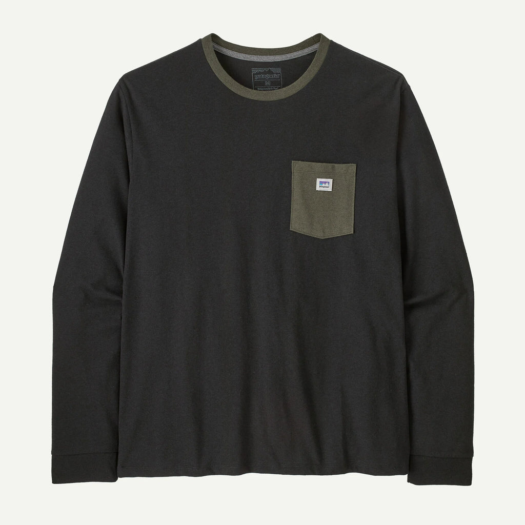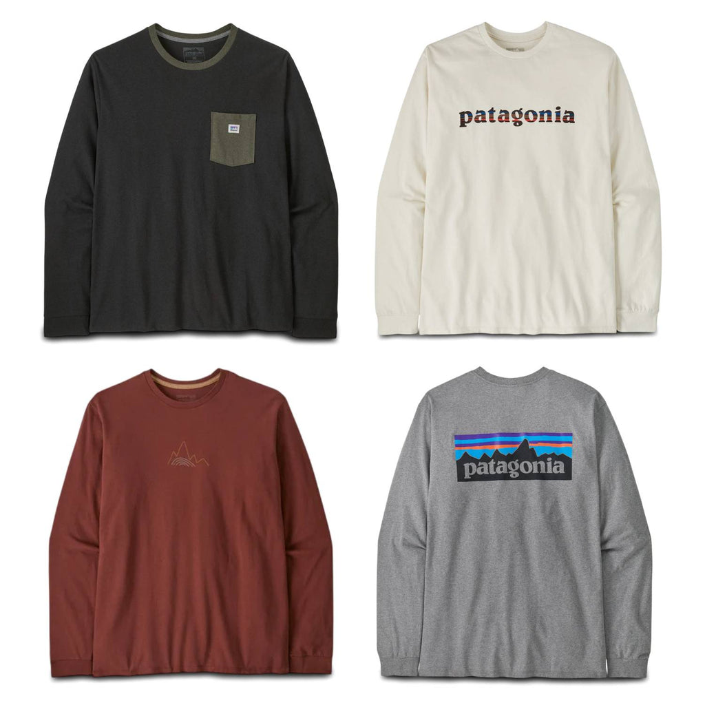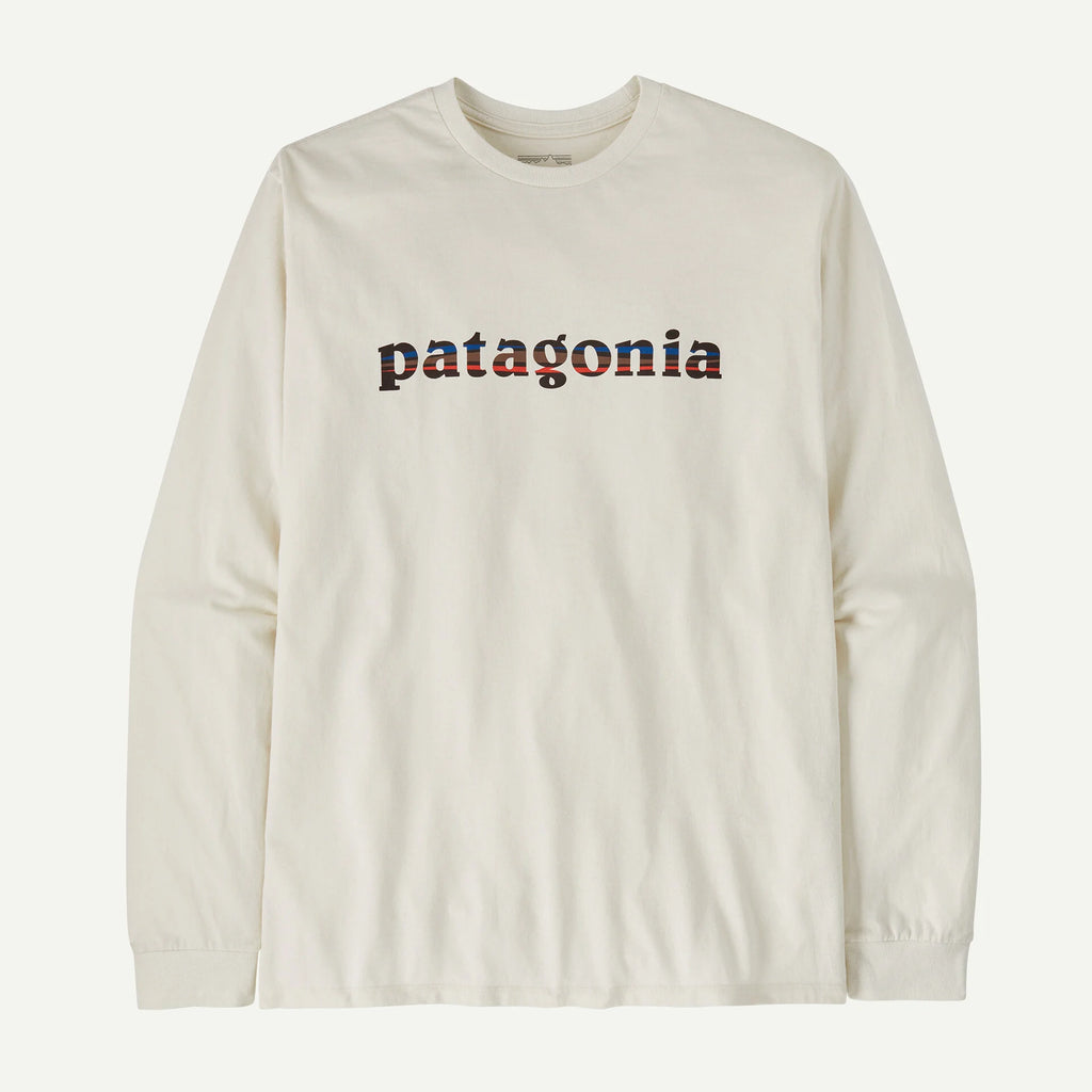 A Patagonia wordmark built with the building blocks of getting after it and printed on a jersey-knit long-sleeved T-shirt made from a 50/50 blend of recycled cotton and postconsumer recycled polyester. By utilizing fabric scraps and recycled bottles, this tee reduces our reliance on virgin raw materials.