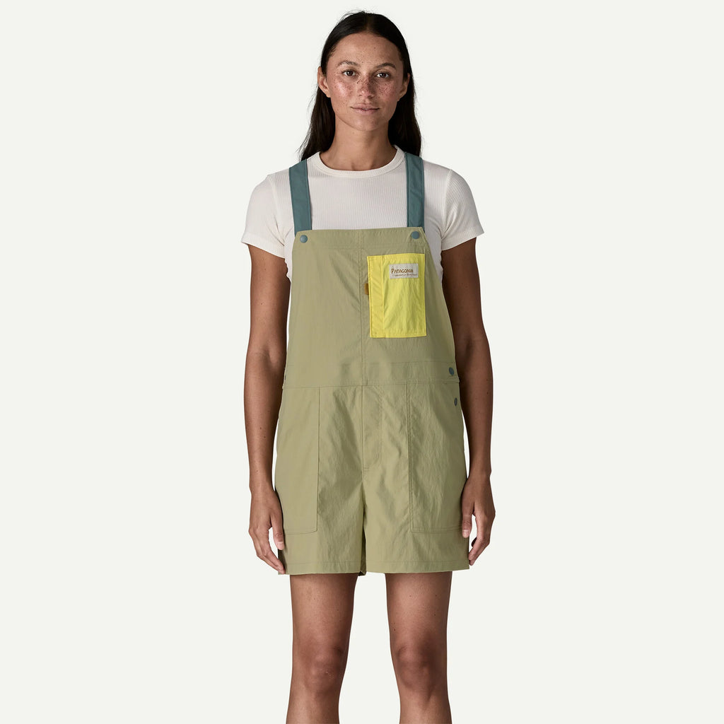 Rugged, multifunctional shorts overalls, built of quick-drying 96% NetPlus® postconsumer recycled nylon made from recycled fishing nets to help reduce ocean plastic pollution/4% spandex plain weave; with a durable water repellent (DWR) finish made without intentionally added PFAS to shed light moisture