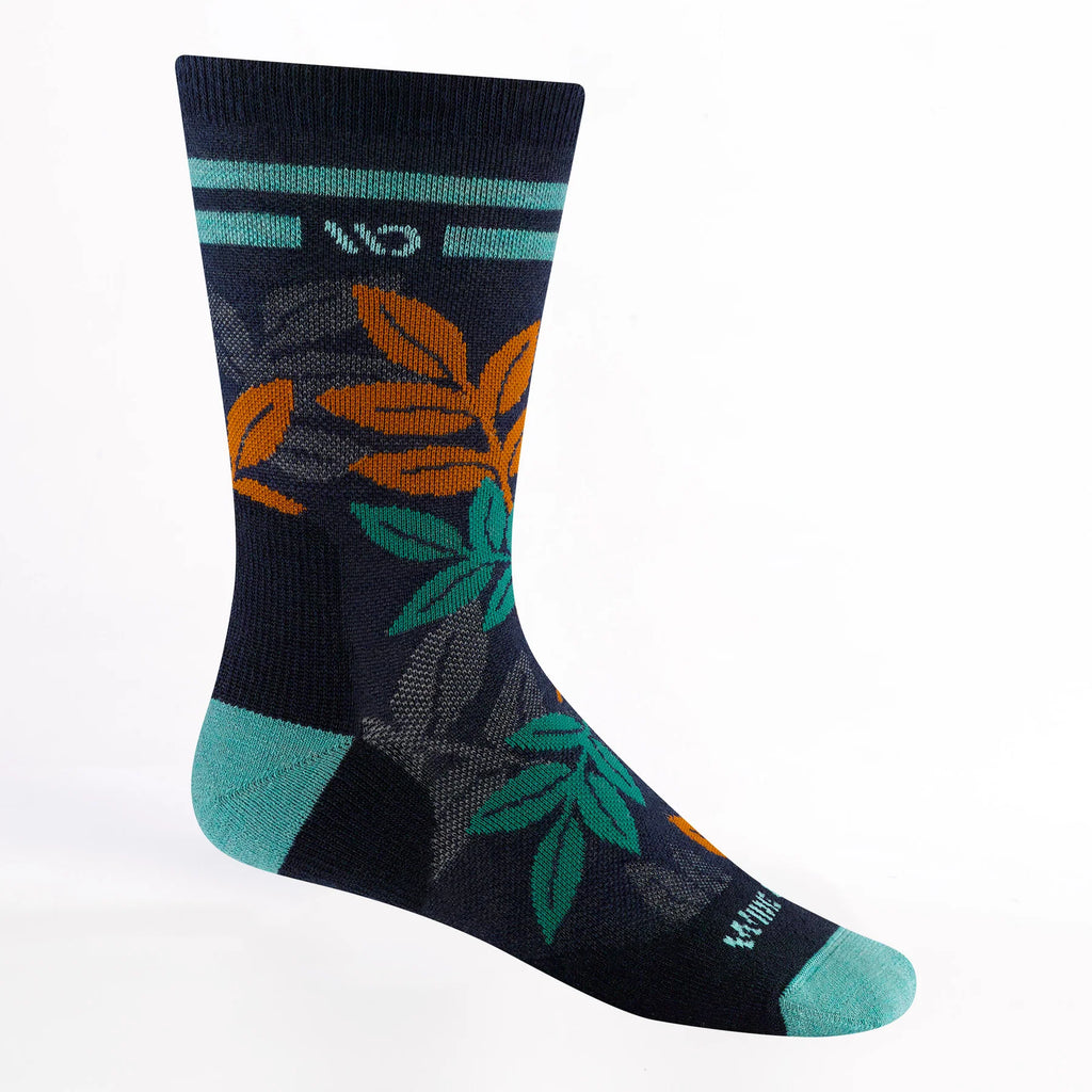 Slip into a laid-back, island-state-of-mind vibe with this mid-weight crew sock. Crafted with a tropical-themed print, it's made from a plush Merino wool blend (53% Merino, 44% Nylon, 3% Lycra Spandex) for natural temperature regulation and all-day comfort. Designed with the “Wide Flex Stretch™” for a comfy fit on wide feet, and a True Seamless™ toe for irritation-free wear.