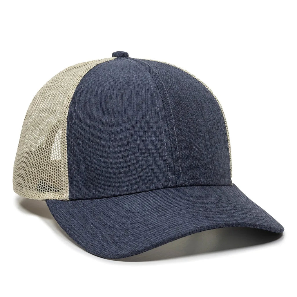 The Outdoor Cap OC770 Premium Low Profile Trucker Cap sets a new standard in fit, finish, and style. Designed with a streamlined pro round crown, this structured cap delivers a clean look free of eyelets and contrast stitching—perfect for showcasing custom logos and branding. Featuring chino twill front panels, breathable mesh back panels, and a comfort-wrapped sweatband, the OC770 blends durability with all-day wearability. A slight pre-curved visor and adjustable plastic snap closure complete the design, making this premium trucker cap a versatile choice for businesses, events, or everyday casual wear. Available in 35 stylish color options.